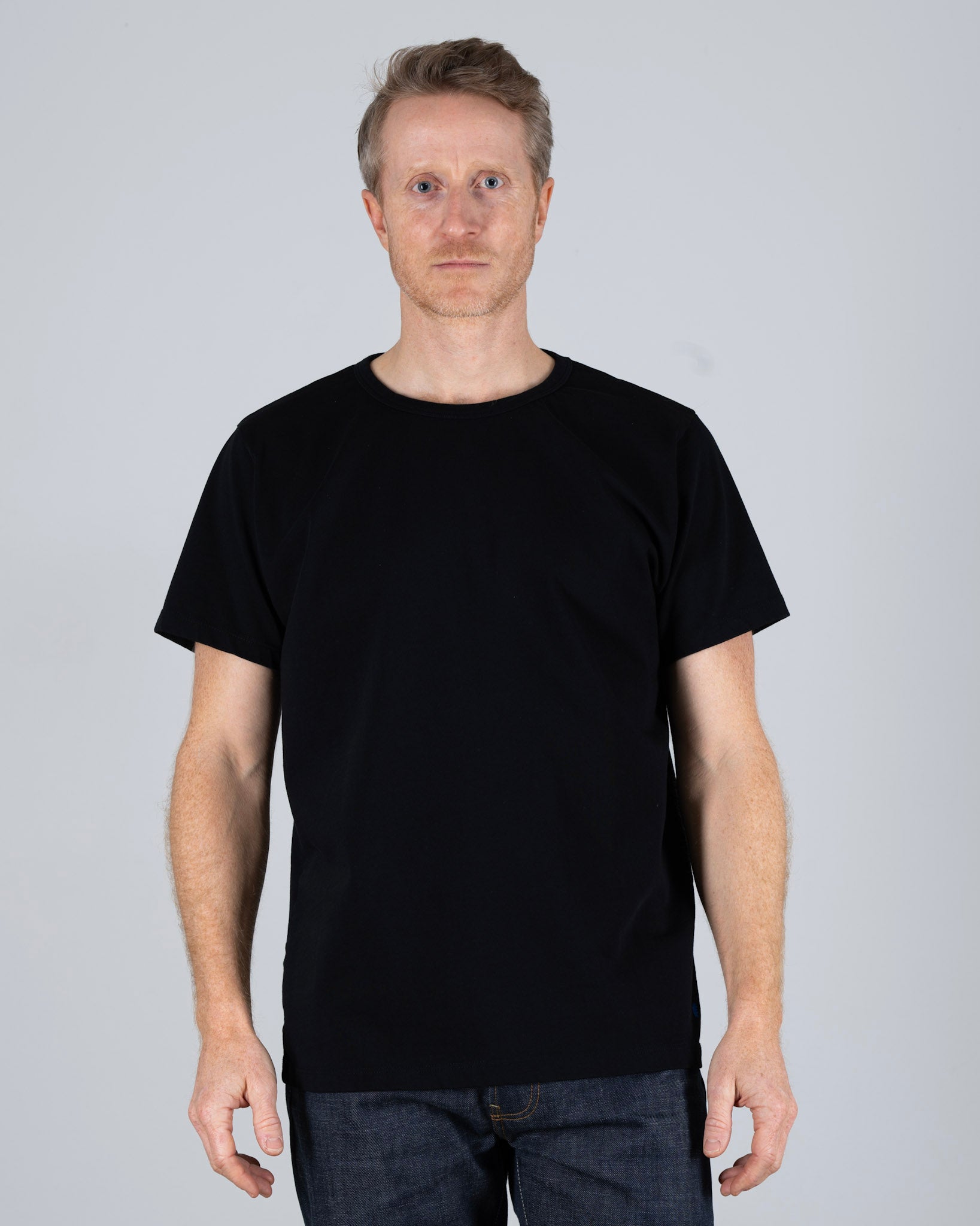 Made from 220 gsm organic cotton jersey, it’s what most would call a heavyweight—but in the raw denim world, it’s the perfect middle ground. Substantial, soft, and drapes well without feeling stiff.