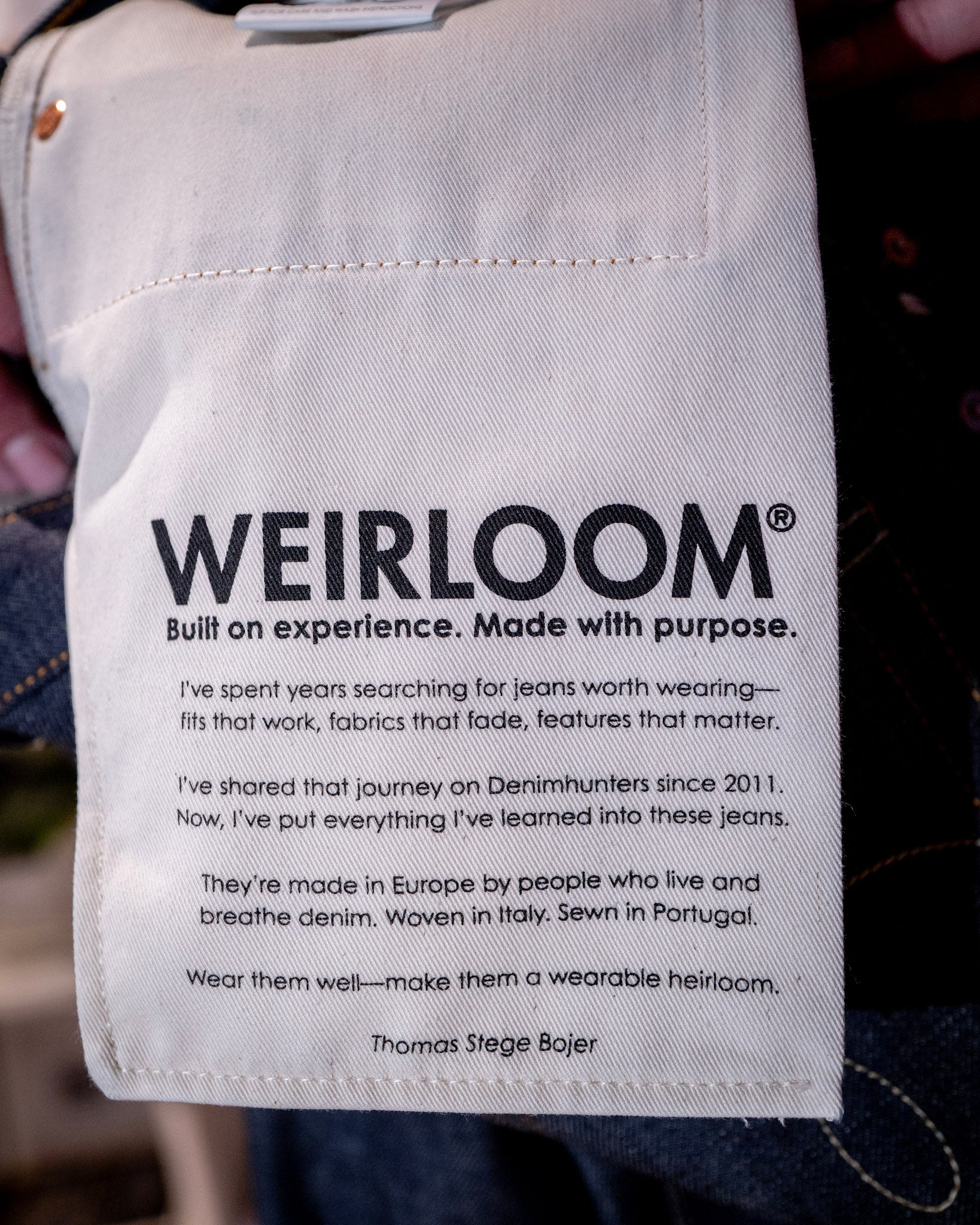 Weirloom is owned and operated by Thomas Stege Bojer under his company, Denimhunters (DK-34993300). The brand is based in Denmark (Europe) where all orders are shipped from.