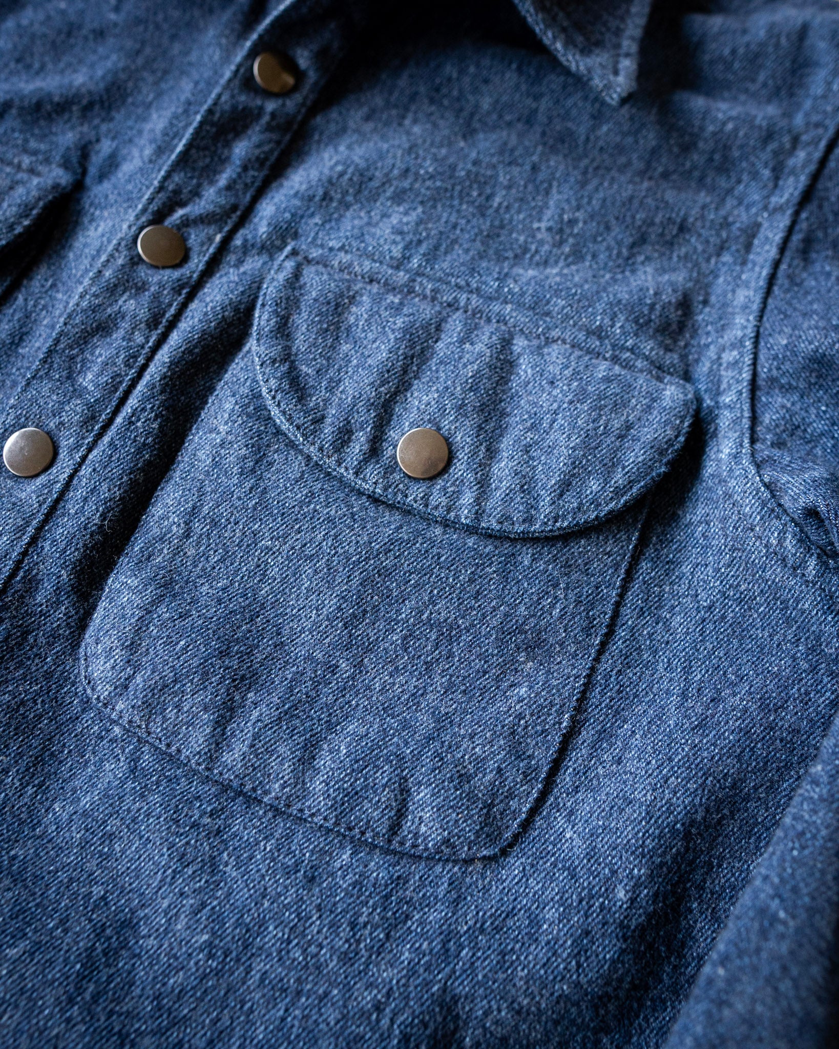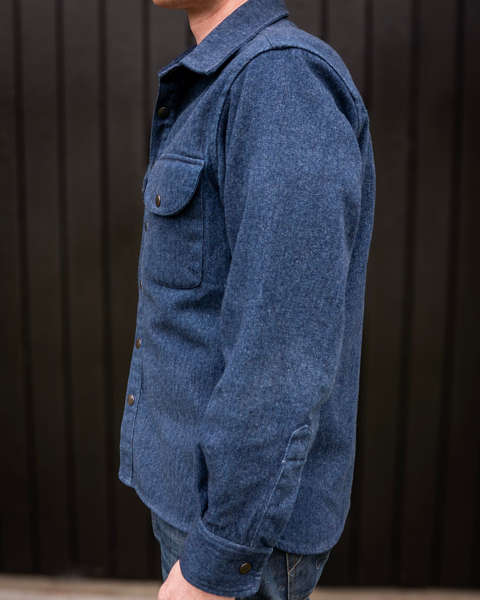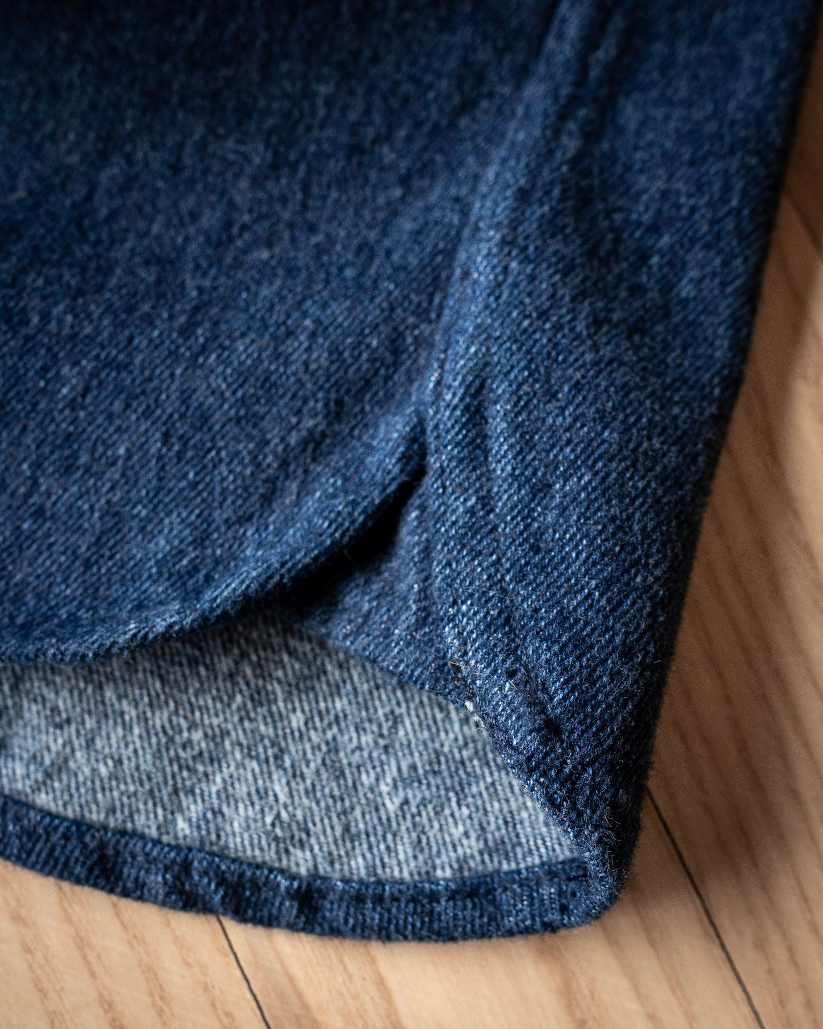 The fabric is a solid indigo-dyed flannel—brushed on the outside and double-brushed on the inside.
