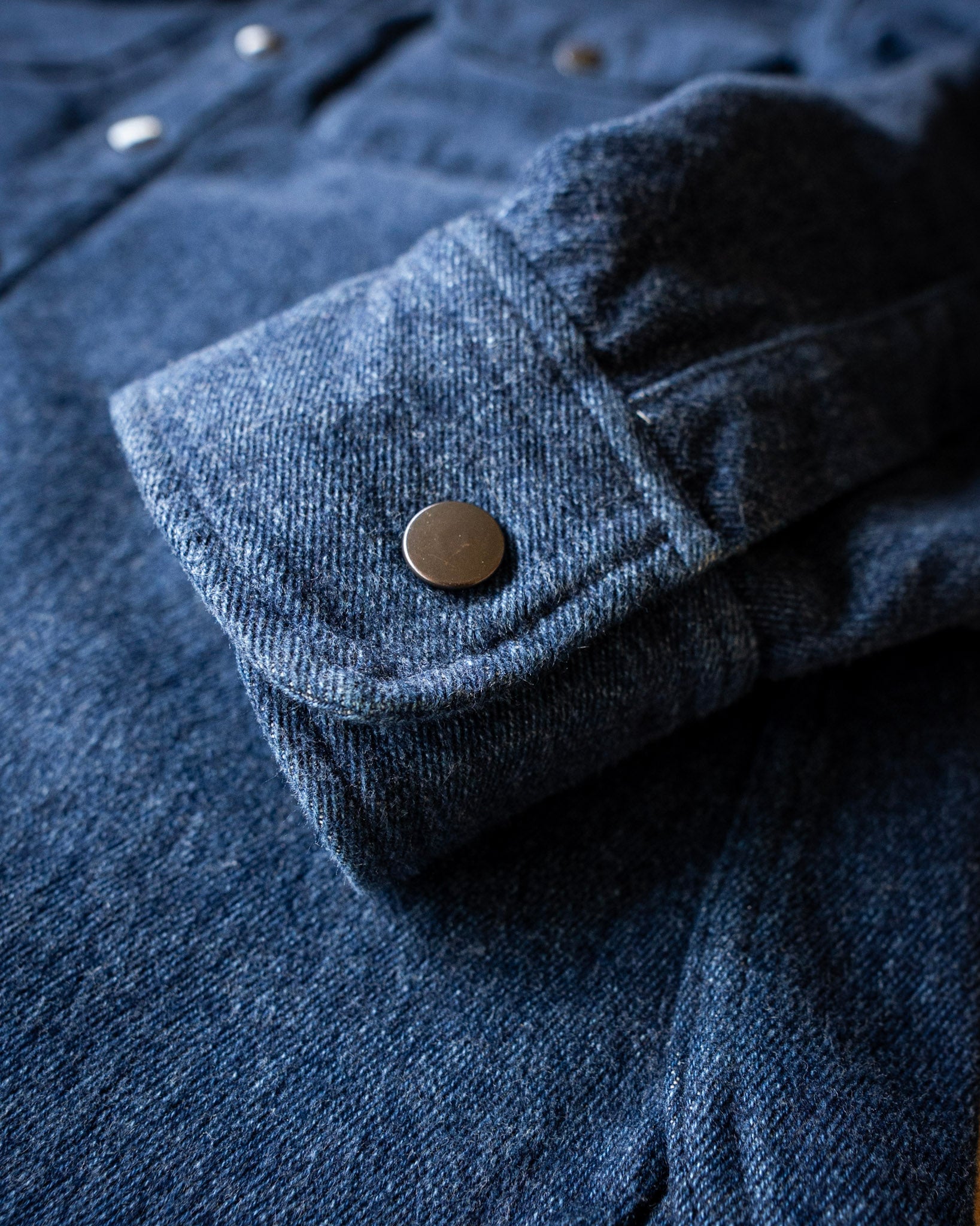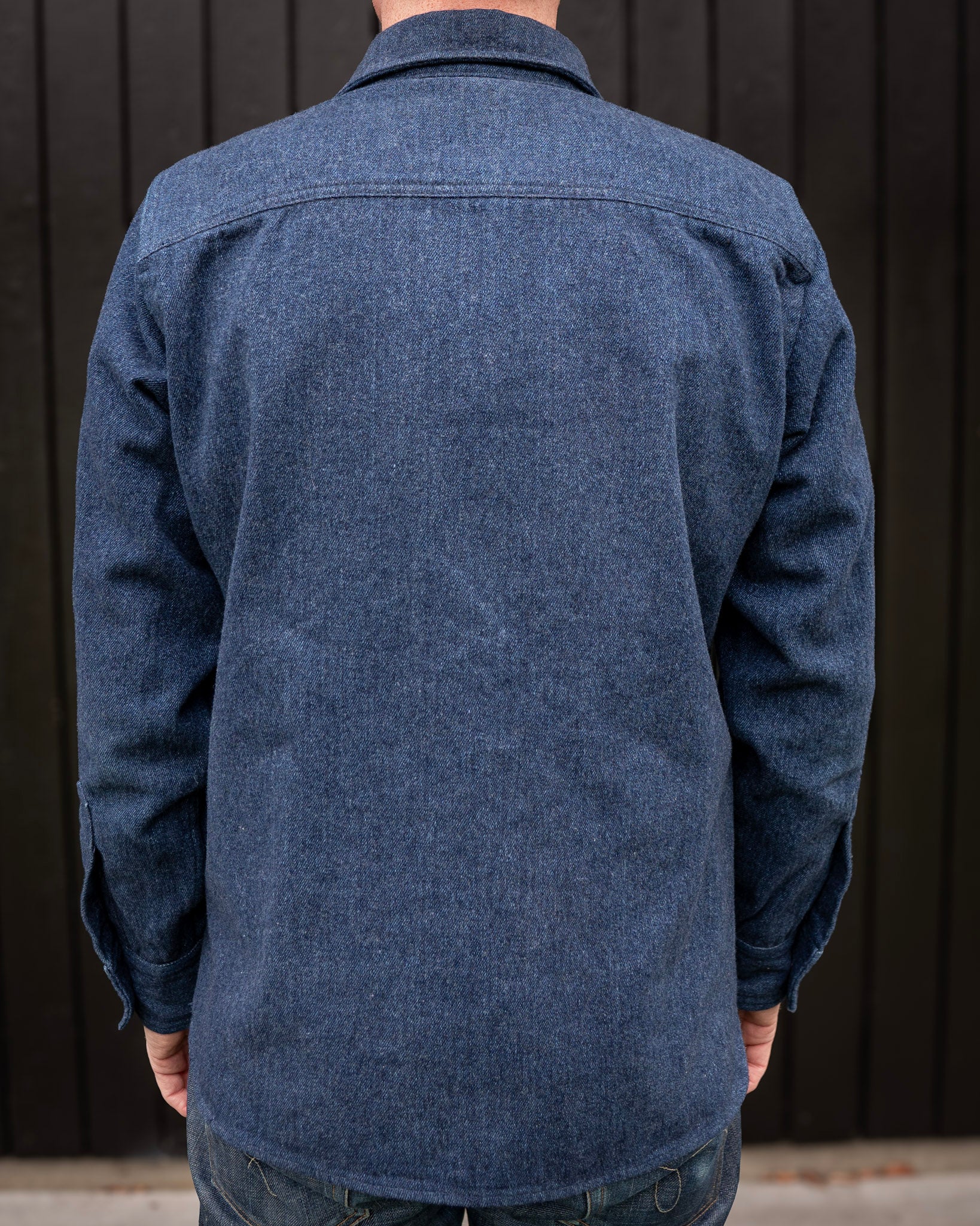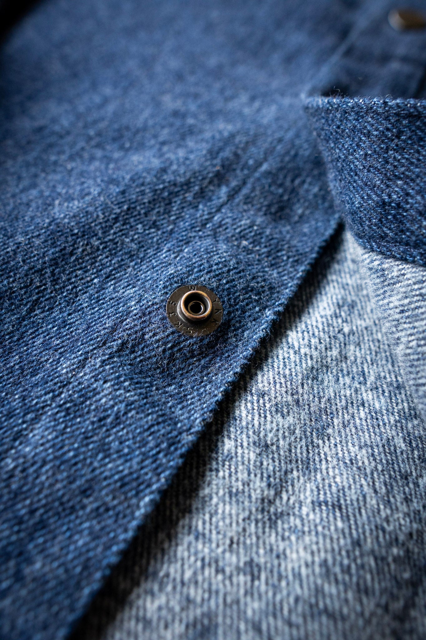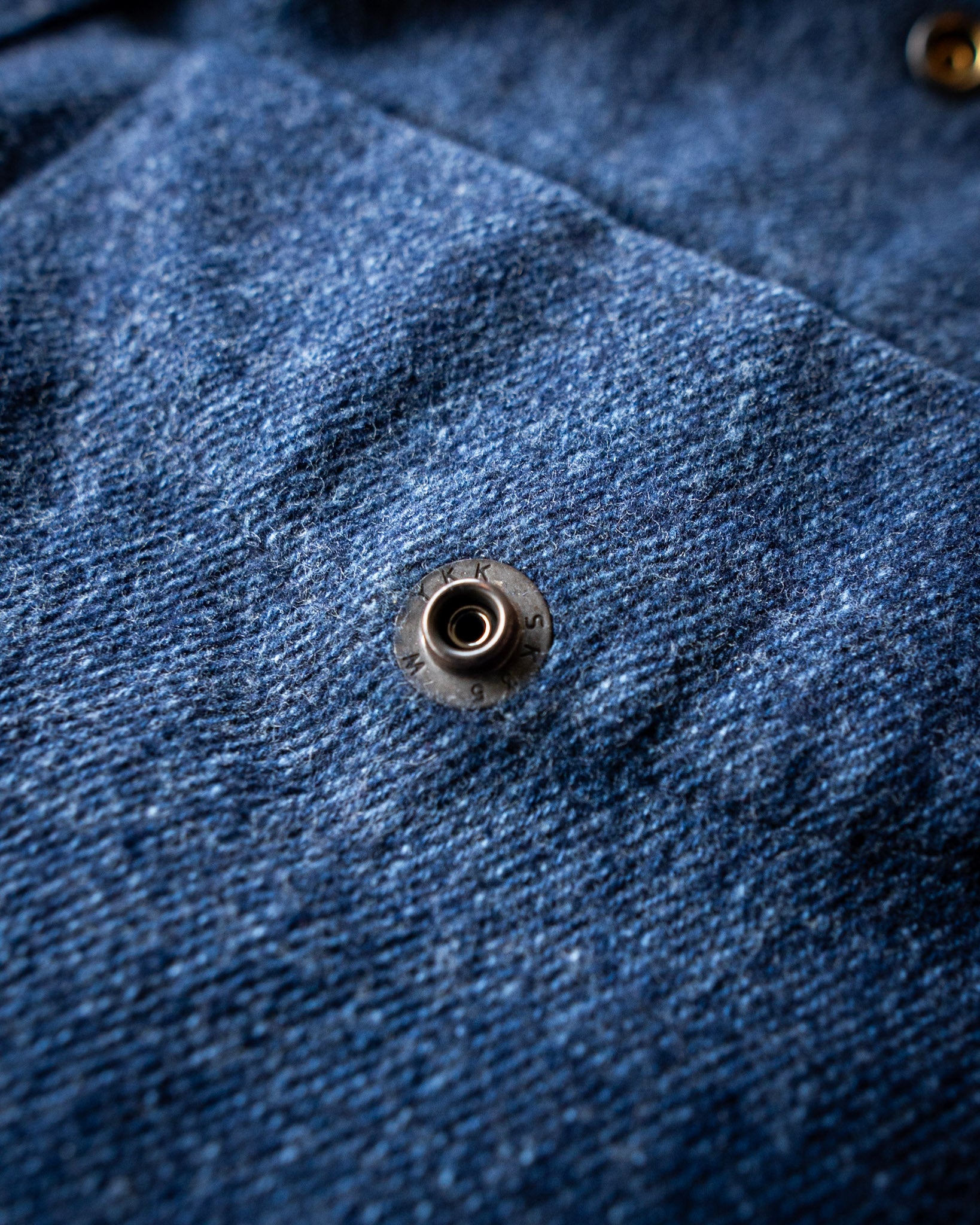 The fabric is a solid indigo-dyed flannel—brushed on the outside and double-brushed on the inside.